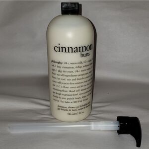 New 32oz Philosophy Cinnamon Buns; Shower Gel, Bubble Bath, Shampoo; 3 in 1 with Pump