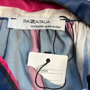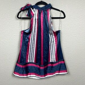 New Piazza Italia Striped Flowy Blouse Top with Bow Side Neck Sz L
