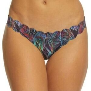 New PilyQ multi color peacock print reversible scalloped edge bikini bottom sz s