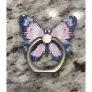 New - Pink & Blue Butterfly Mobile Phone Ring Bracket with 360 Rotation