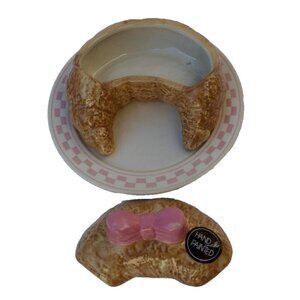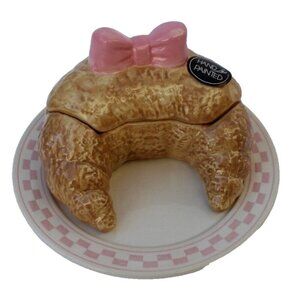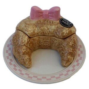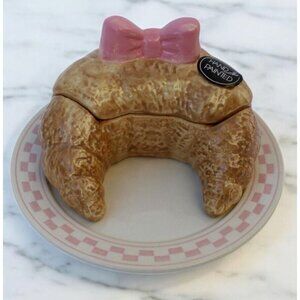 New Pink Bow Tie Girly Serving Croissant Dish With Lid Ceramic By Luna & sage