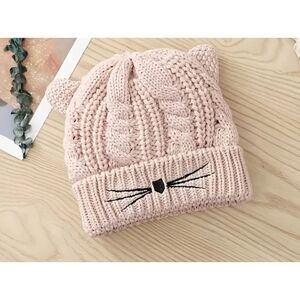 New! Pink Cat Ear and Whisker Face Beanie Stocking Cap Hat