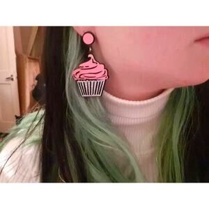 New Pink Cupcake Dangle Sparkle Drop Earrings Kidcore Y2k Barbie Pastel Goth