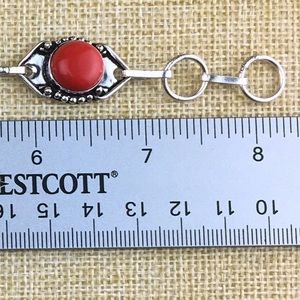 New without tags. Pink Iridescent Dichroic Glass/Resin with with red Coral bracelet. Coral maybe natural or simulated. Toggles are approximately 7.25” and 8”. Handmade so it’s not perfect, silver plated.
