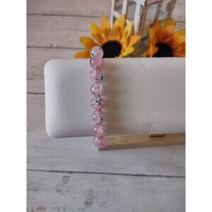 New Pink Glass w/Multicolor Specks Stretch Bracelet Crackled Beads