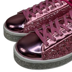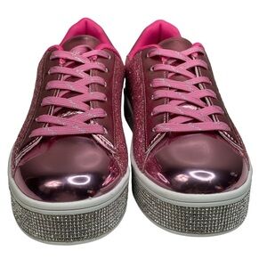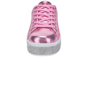 New Pink Glitter White w Rhinestone 2” Platform Festival Party Sneakers Size 7.5