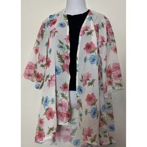 New Pink Milly Floral Duster Open Front Floral 3/4 Sleeve Cover Up Swimwear M