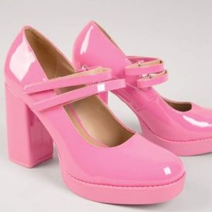 New Pink Patent Mary Jane Platform Chunky Heel Pumps