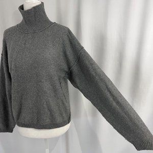 New Pink Rose Raw Seam Knit Long Sleeve Pullover Turtleneck Sweater Grey Size XS