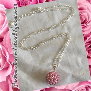 Very pretty and delicate pink Shamballa Crystal necklace. Sterling silver, 925 stamped necklace.πNEWπ
