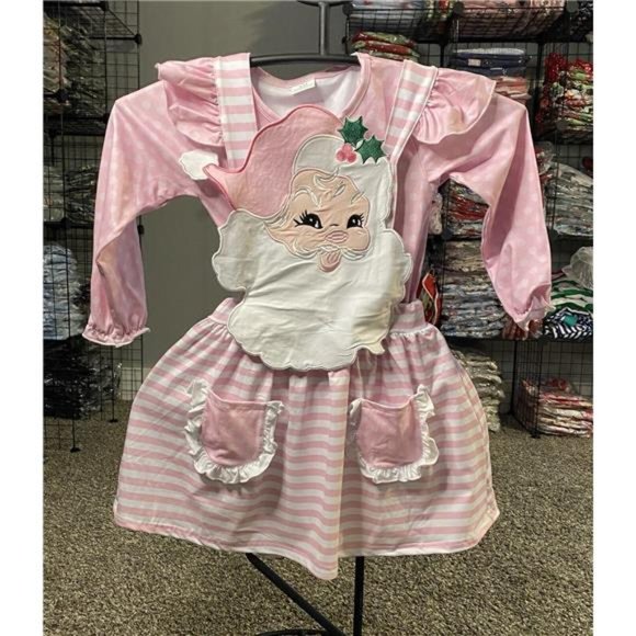 New Pink & White Embroidered Santa 2-Piece Christmas Dress w/Long Sleeve Shirt