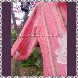 New Pink/White Khadi Kurta - Floral applique Work -Shirt Dress