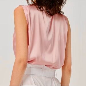 This Pinko bodysuit showcases a sleeveless design in a beautiful pink hue, featuring a ruched wrap style that adds a touch of elegance. The plunging V-neckline and lightweight fabric create a sophisticated draped effect, perfect for a seamless and chic look.