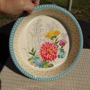 Very lovely Pioneer Woman Blooming Bouquet 10" Pie Pan. Microwave, dishwasher and oven safe. Material contains stoneware. Design and colors are gorgeous! Makes a great gift or just keep it yourself! 10" across and 1 3/4" deep. Tags still attached.