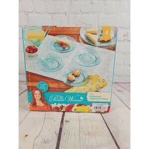 New! Pioneer Woman Cassie Teal Embossed Appetizer Plates Set~Teal