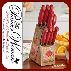 🦋 New Pioneer Woman Sweet Rose Block Knife Set, Red