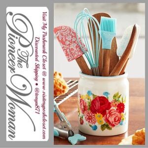 🦋 New Pioneer Woman Sweet Rose Mini Crock Holder & Cooking Utensils