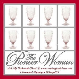 🦋 NWT The Pioneer Woman Amelia 14.7-Ounce Footed Glass Goblets, Set of 8, Rose Red Pink