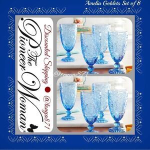 š¦ NWT The Pioneer Woman Amelia 14.7-Ounce Footed Glass Goblets, Set of 8, Blue