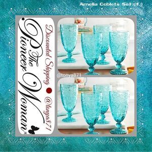 š¦ NWT The Pioneer Woman Amelia 14.7-Ounce Footed Glass Goblets, Set of 8, Teal Blue