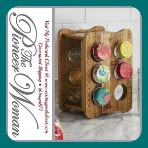 š¦ New PioneerĀ Woman Sweet Rose Acacia Wood SpiceāRackāwithāGlassāJars