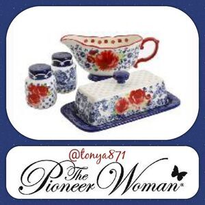 🦋 NWT The Pioneer Woman Heritage Floral ~ Frontier Rose Butter Dish w/Lid, Gravy Boat and Salt & Pepper Set, 5 Piece Set.