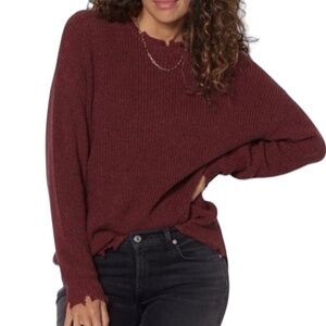 Styles Crew Neck Long Sleeves Ripped Distressing Destroyed Destructed Fraying Edge Grunge Fall Fashion Autumn Outfits Winter Cool Weather Casual Burgundy Maroon Dark Red Sweater New Sweaters