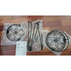 New Plant Stand, Metal Planter Holder Indoor Outdoor, 2 Tier Round Potted