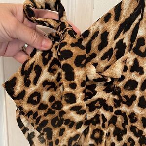 New Pleione Brown Leopard print Blouse with Tie Sleeve details