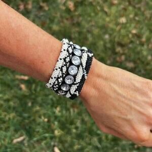 New Plunder "Eleanora" Black and Cream Seed Bead Bracelets (7")