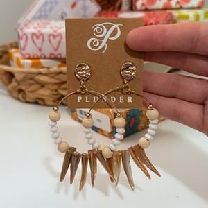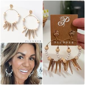 New Plunder "Ellington" Natural Shell Hoop Earrings (3.5")