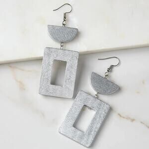 New Plunder “Gracie” Matte Silver Wood Earrings (3”)