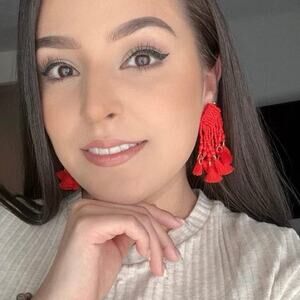 New Plunder "Monique" Red Seed Bead Tassel Earrings (3")