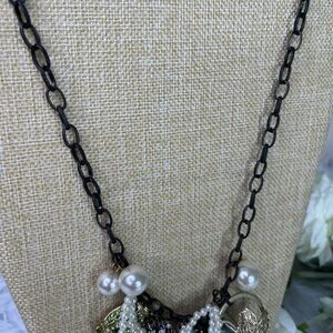 The Plunder Pearl Statement Necklace is a chunky and layered piece of vintage-inspired jewelry that features imitation pearls. This statement necklace is perfect for adding a touch of inspirational style to any outfit. New!
