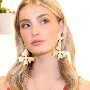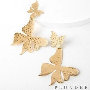 New Plunder "Reign" Antiqued Gold Butterfly Earrings (4")