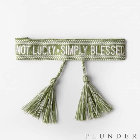 NEW in box! Sage green and white embroidered “NOT LUCKY, SIMPLY BLESSED” bracelet.