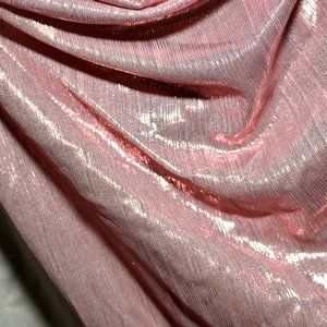 Absolutely gorgeous blush pink metallic fabric reminds me of sparkling champagne. This top features a loose scooping neckline, thin spaghetti straps, and a sexy low back with cross straps. The back has an elastic stretch band to help keep the front chest area somewhat form-fitted. The way this fabric shines and sparkles with movement makes is perfect for date night, club wear, concert, festival, or a special glitzy holiday like New Year's Eve.