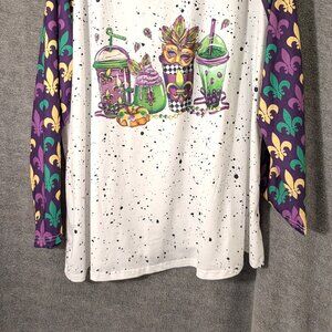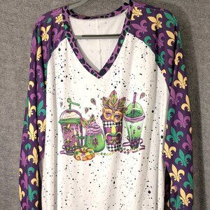New, plus size 5X Mardi Gras Shirt with fun to-go beverages.