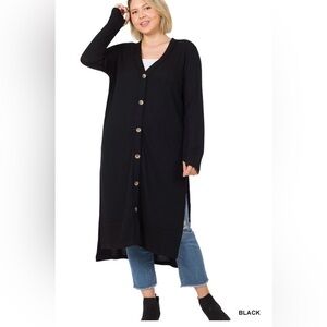 New! Plus Size Women's Black Ribbed Long Cardigan Sizes 1X 2X 3X