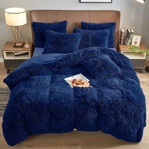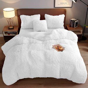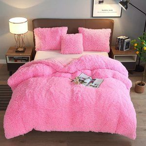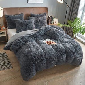 LUXURY AND SOFT: Fluffy duvet cover set is woven from high quality microfiber material. The front is high pile polyester microfiber plush shaggy which is ultra soft and elegant. The back is silky smooth velvet flannel which is breathable and keep you warm in chilly days, allow you have a sweet dream all night.