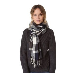 New! Plush Women’s Ultra Soft Navy Blue Plaid Flannel Fringe Scarf