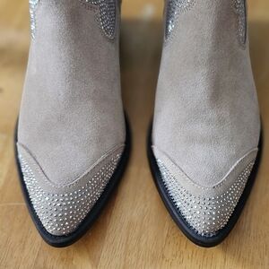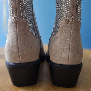 New Poelman Cappuccino Suede Western Rhinestone Boots