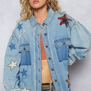 New Pol Denim Shacket Top Button Shirt Women Stars Boho Anthropologie type