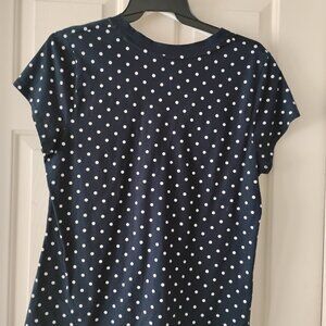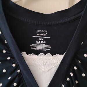 New blouse never worn in excellent condition. Black with white dots and pretty lace in V neck front. 100% cotton and made in Guatemala.