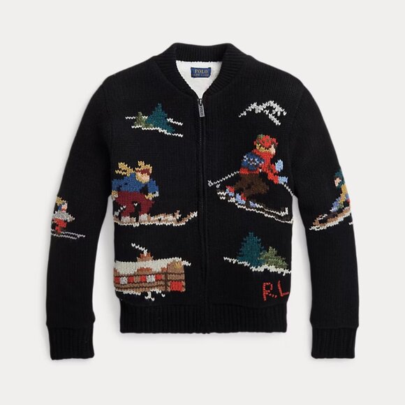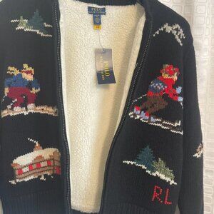 This is a Polo Ralph Lauren Intarsia Skier Hand-Knit Cardigan, inspired by an archival piece from the 1983 runway show. These sweaters are and will be very collectible Retails for 295