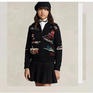 New Polo By Ralph Lauren Intarsia Wool-Blend Full Zip Kids Cardigan