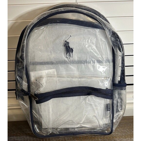 New Polo Ralph Lauren Backpack Pony Clear & Navy Blue Waterproof NWT SCHOOL TRIP