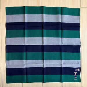 New Polo Ralph Lauren Bear Handkerchief Scarf Pocket Square Green Grey Stripes