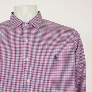 New Polo Ralph Lauren Button Down Shirt Mens 2XL XXL Pink Plaid Non-Iron Cotton