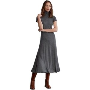 New Polo Ralph Lauren Wool Blend Gray Turtleneck Fit & Flare Midi Dress XS $298